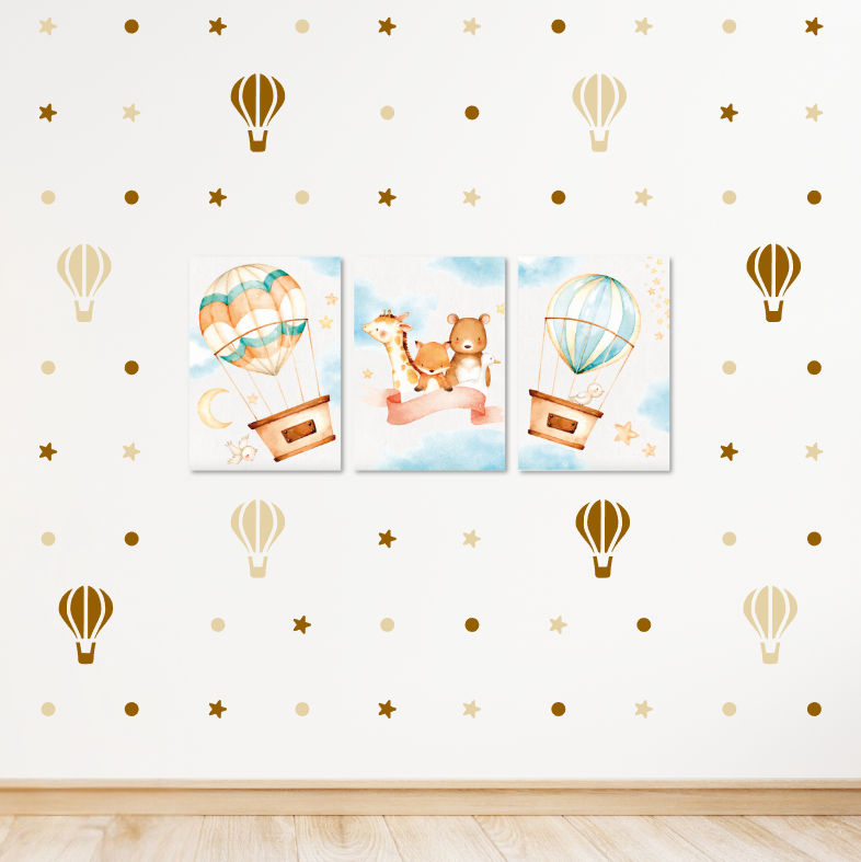 Adesivos de Parede – Fáceis de aplicar e remover, sem danificar a parede. Designs lúdicos que estimulam a imaginação infantil.
