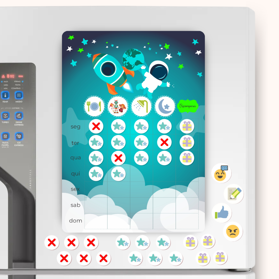 Transforme as tarefas diárias em uma experiência divertida e educativa! Com o Quadro de Incentivo Magnético, as crianças se sentem motivadas a atingir metas e construir responsabilidades com alegria e engajamento.