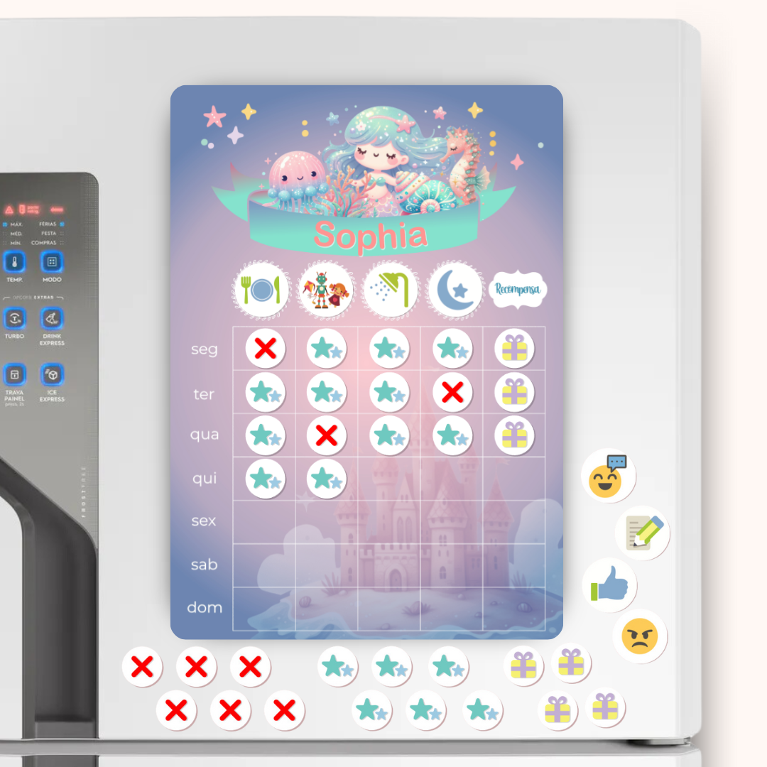 Transforme as tarefas diárias em uma experiência divertida e educativa! Com o Quadro de Incentivo Magnético, as crianças se sentem motivadas a atingir metas e construir responsabilidades com alegria e engajamento.